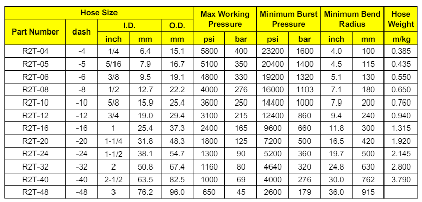 SAE 100 R2AT / EN 853 2SN là dòng ống thủy lực cao áp gồm 2 lớp lưới thép bện cường lực, đáp ứng đồng thời tiêu chuẩn SAE J517 R2AT và EN 853 2SN. Sản phẩm này phù hợp với các hệ thống thủy lực yêu cầu độ linh hoạt, độ bền và khả năng chịu áp suất cao trong điều kiện làm việc khắt khe.